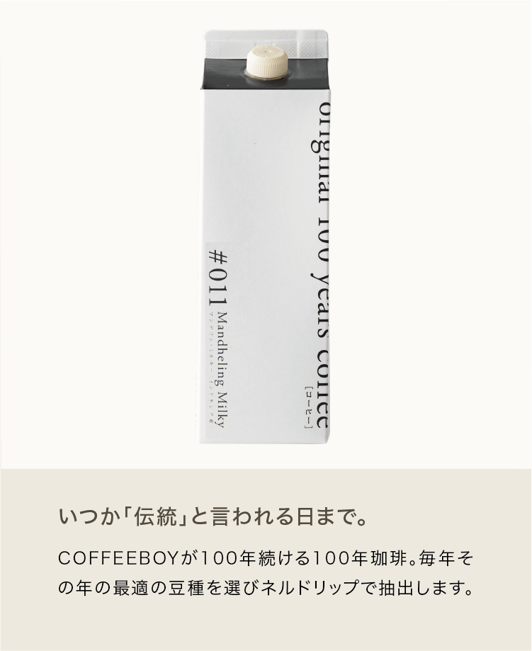 深く洗練された甘みを味わえる無糖タイプのリキッドコーヒー”百年珈琲”4本を詰め合わせ、ギフト仕様でお届けいたします。”百年珈琲”は、グラスに注ぐだけで手軽にお楽しみいただけます。また、コーヒーを淹れるための器具をお持ちでない方へのプレゼントにもおすすめです。