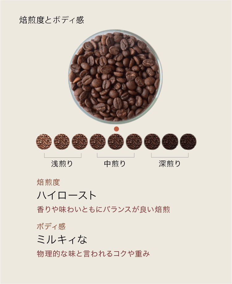 のびのび育ったコーヒーのもつ明るいテイストをぜひお楽しみください。